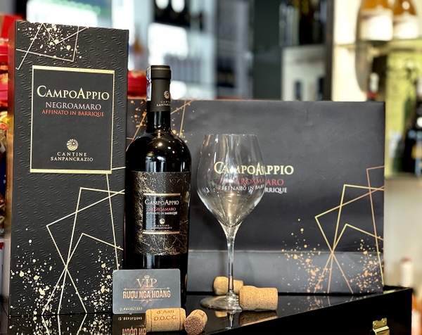 Rượu vang Ý Campo Appio Negroamaro là một trong những chai vang Ý cao cấp tại Showroom Rượu Nga Hoàng - 93 Trần Duy Hưng với hương vị, chất lượng tuyệt vời. Giá chai vang Ý Campo Appio Negroamaro trên thị trường biến động, vào khoảng từ 550.000 – 700.000 đồng, tuỳ vào thời điểm. Khách hàng có nhu cầu mua số lượng nguyên thùng hoặc số lượng lớn hơn nữa hãy liên hệ với Rượu Nga Hoàng để nhận báo giá và chiết khấu tốt nhất.