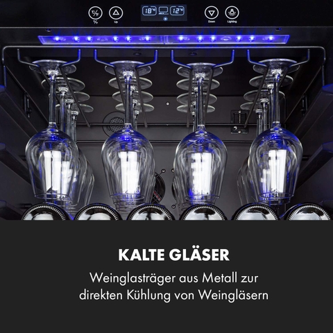 - Điểm nổi bật của tủ trữ rượu 127 chai là tích hợp kệ treo ly phía trong tủ. Kệ đựng ly rượu làm bằng kim loại anot đen giúp làm lạnh ly rượu 1 cách dễ dàng, ly có được nhiệt độ làm mát tương đương với rượu – để thưởng thức hoàn hảo nhất!